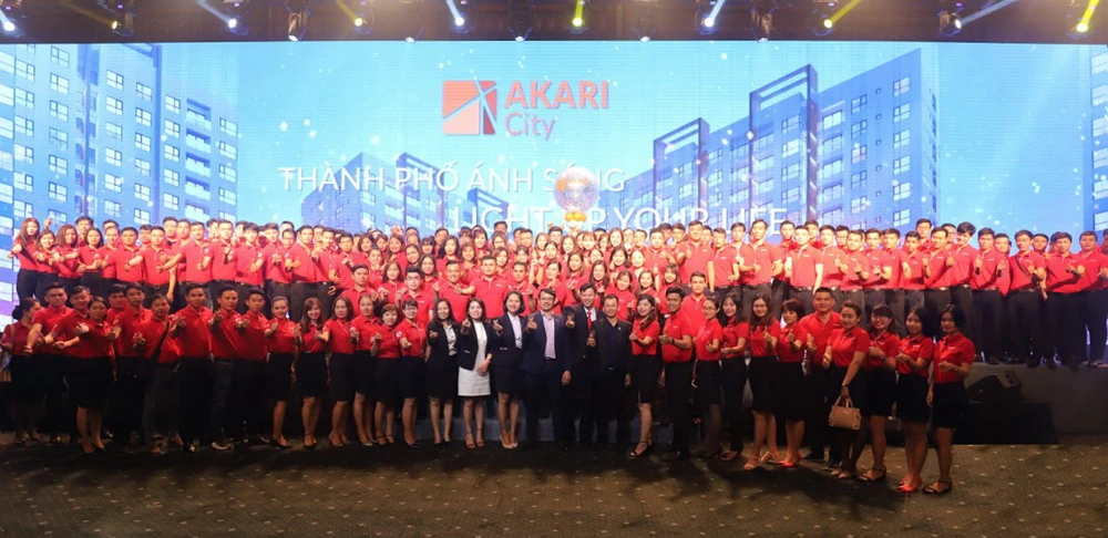 Đội ngũ sales DKRA Vietnam hừng hực khí thế tại Lễ ký kết hợp tác chiến lược phân phối Khu đô thị ánh sáng Akari City giữa Tập đoàn Nam Long và DKRA Vietnam.