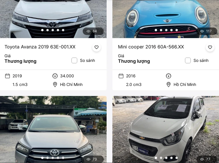 Một số ô tô được ngân hàng VIB rao thanh lý với giá thương lượng. (Ảnh cắt từ website ngân hàng VIB)