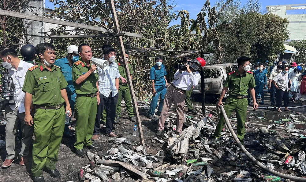 Theo thông tin ban đầu, vào khoảng 08 giờ 40 phút sáng 30-3. Người dân nghe tiếng nổ lớn phát ra từ nhà kho của ông Trần Phước Tân (khu vực tổ 12, khóm Phó Quế, phường Mỹ Long, TP Long Xuyên, tỉnh An Giang).