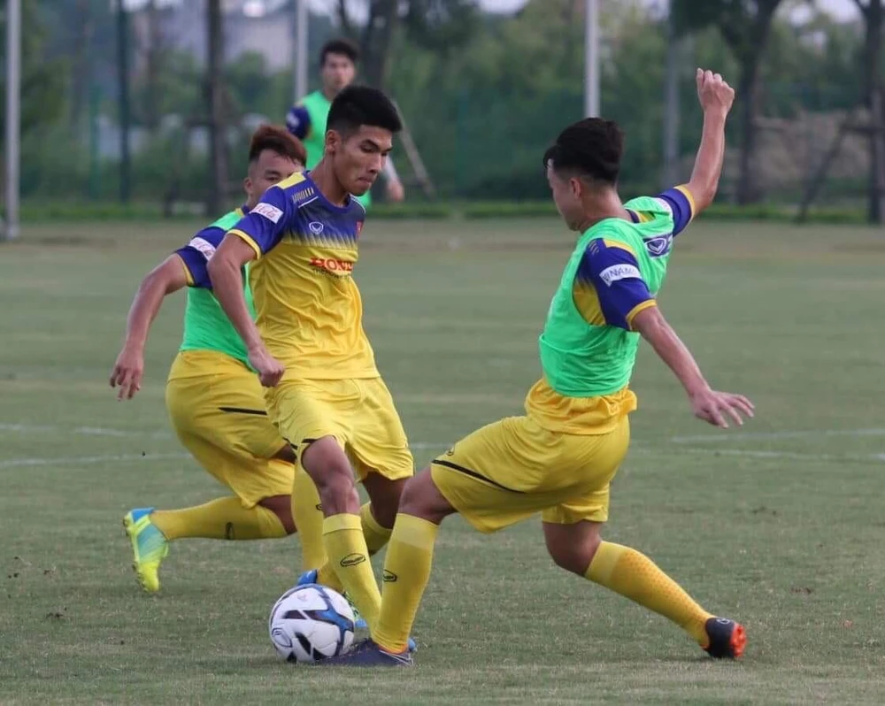 Đội tuyển trẻ U-22 Việt Nam hào hứng trước cuộc đối đầu với chủ nhà mạnh mẽ U-22 Trung Quốc trên sân Vũ Hán ngày 8-9. Ảnh: NGỌC DUNG