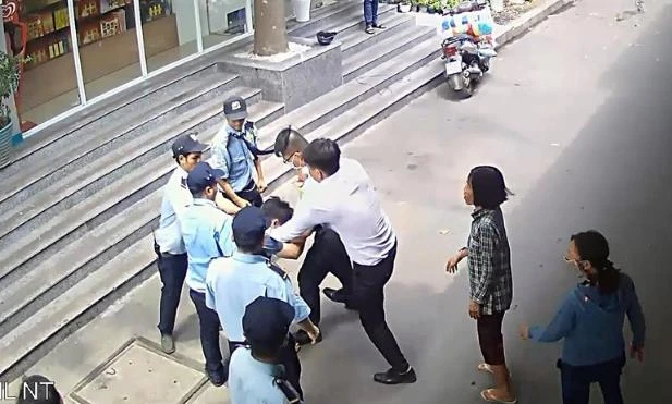 Hình ảnh xô xát giữa bảo vệ BV Nhân dân 115 và ông Hưng. Ảnh: BVCC