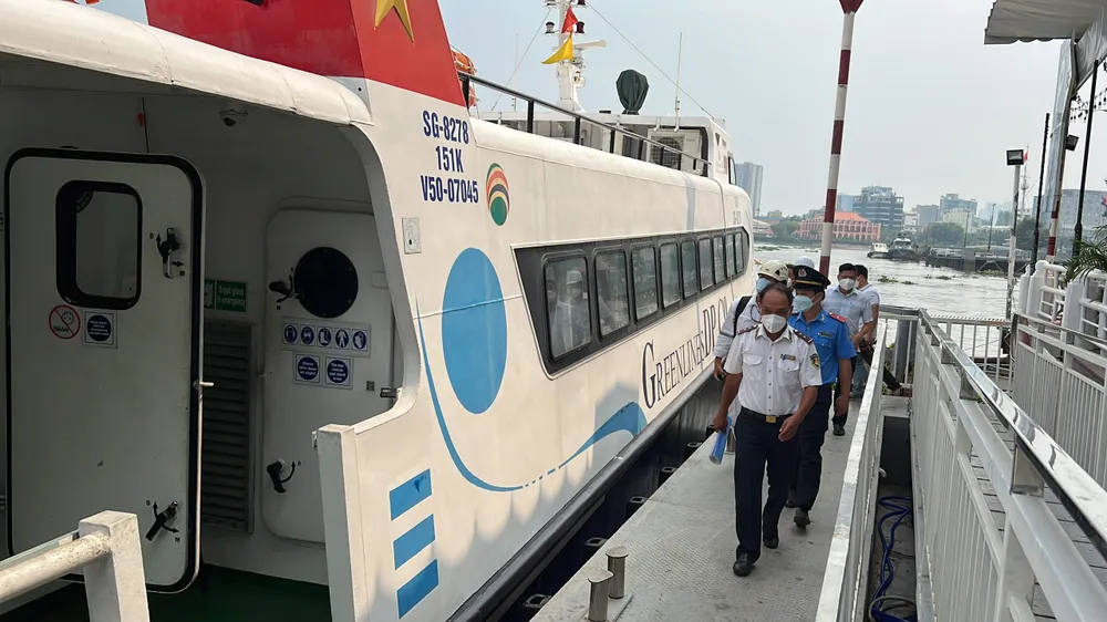 Đoàn công tác đã kiểm tra tàu cao tốc TP.HCM - Vũng Tàu do Công ty TNHH Công Nghệ Xanh DP (Greenlines DP) khai thác. Ảnh: ĐT.
