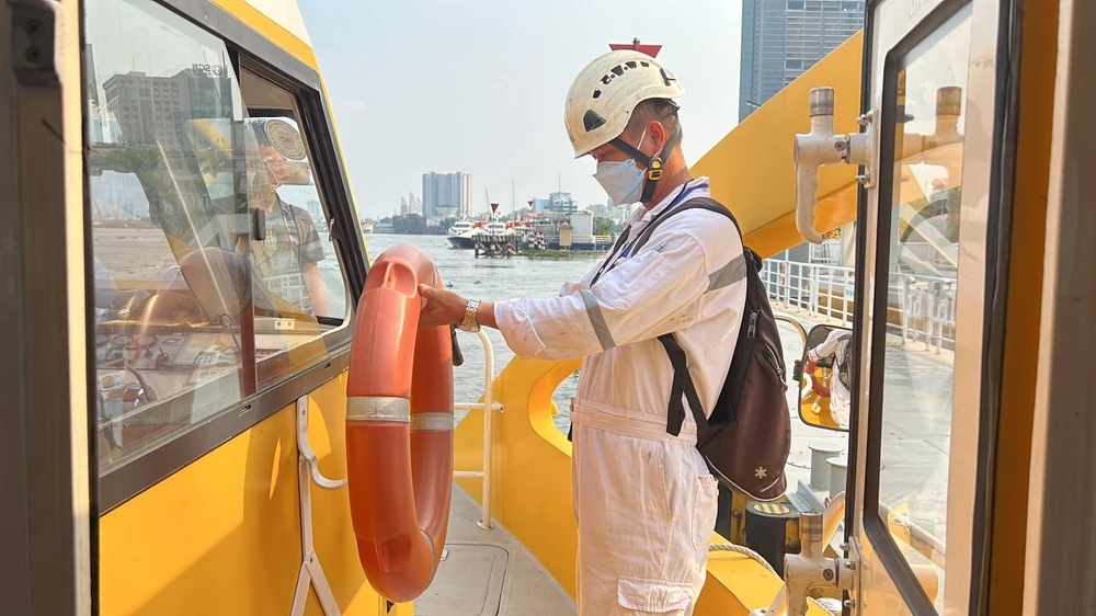 Kiểm tra tuyến buýt sông số 1. Ảnh: ĐT.