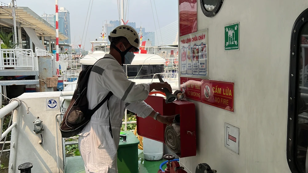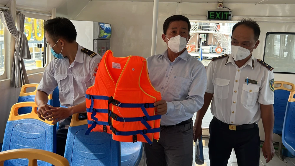 Sau đó, đoàn kiểm tra tiếp tục kiểm tra các vấn đề an toàn đường thuỷ của tuyến buýt sông số 1 (Bạch Đằng - Linh Đông).