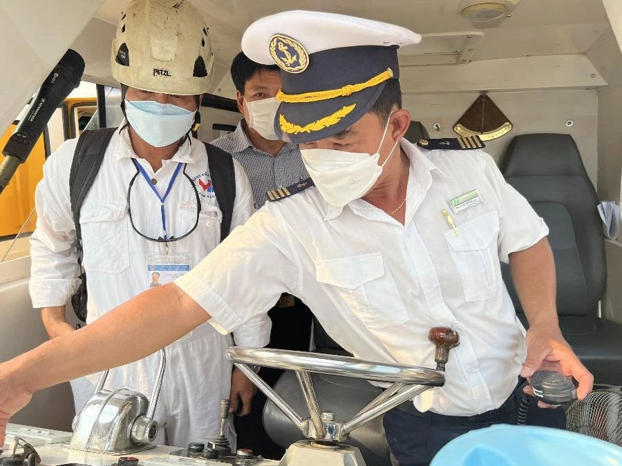 Tham dự buổi kiểm tra có đại diện Phòng Cảnh sát đường thuỷ (PC08), Cảng vụ đường thuỷ nội địa TP, Thanh tra Sở GTVT, Chi Cục đăng kiểm 6...