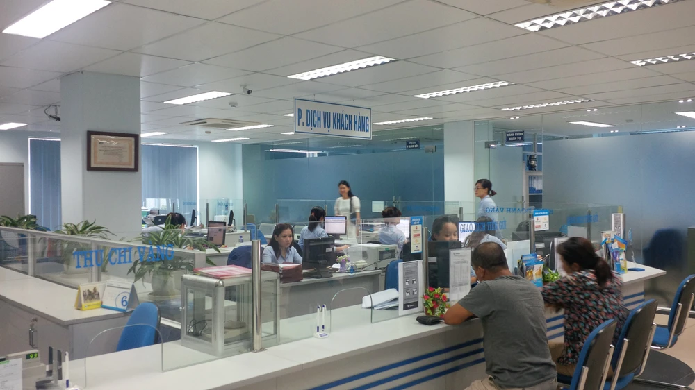 Khách hàng đang giao dịch tiết kiệm gửi tại Ngân hàng Xuất nhập khẩu Việt Nam (Eximbank). Ảnh: TL