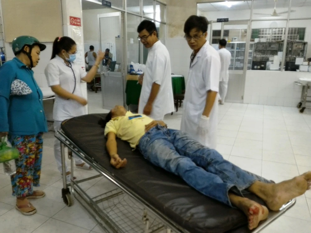 Người đàn ông được đưa đến bệnh viện huyện Châu Thành để cấp cứu (ảnh HÀ HUY)