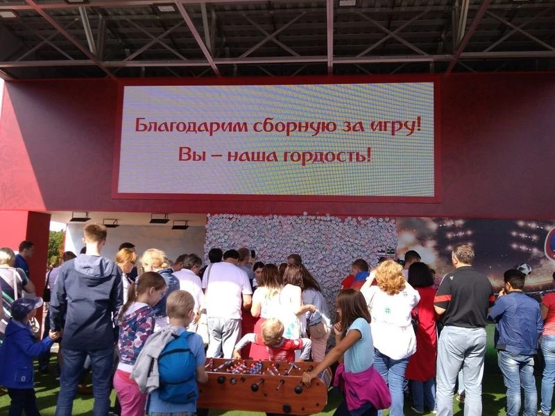 Sau khi thua Croatia tại tứ kết ở Sochi, toàn tuyển Nga quay lại Moscow và có buổi giao lưu với khoảng 26.000 fan hâm mộ Nga vào ngày 8-7.