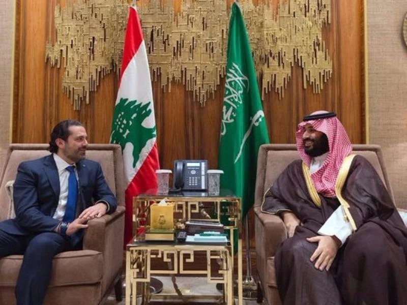 Ảnh công bố ngày 30-10-2017 cho thấy cuộc gặp giữa thái tử Mohammed bin Salman (phải) với Thủ tướng Lebanon Saad Hariri ở Riyadh. Ảnh: AP