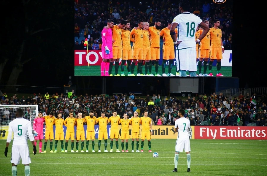 Trước trận đấu, những người có mặt trên sân đã dành một phút mặc niệm các nạn nhân bị khủng bố. Tất cả khán đài cùng đội tuyển Úc trên sân kính cẩn cúi đầu dành một phút mặc niệm nhưng toàn đội Saudi Arabia làm như không có chuyện gì xảy ra. Kẻ thì đứng “chống nạnh”, người thì tiếp tục làm nóng, vung tay, múa chân rất vô cảm, thiếu tôn trọng…
