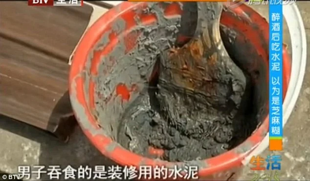Lúc đó, lực lượng cảnh sát tỉnh Giang Tô, Trung Quốc đã được người dân gần khu vực thông báo rằng một người đàn ông say rượu nặng đã bỏ bê tông vào miệng mình và ăn một cách thản nhiên.