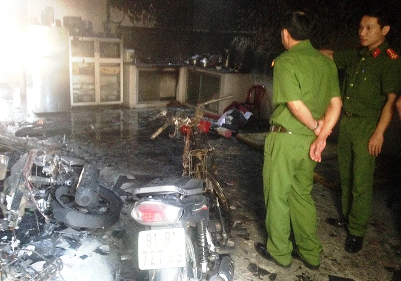 Công an khám nghiệm vụ cháy. Ảnh: LQL