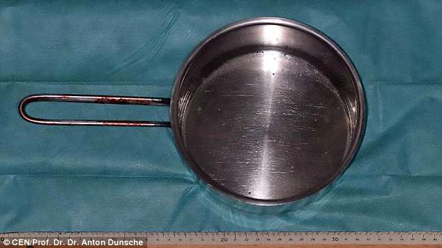 Chiếc chảo được lấy ra khỏi người đàn ông sau ca phẫu thuật. Ảnh: Anton Dunsche