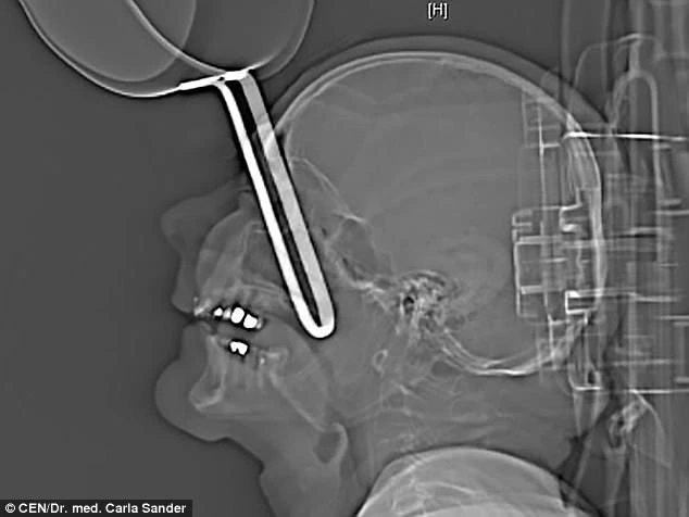 Phim chụp X-quang cho thấy cán chảo đâm khá sâu vào mắt người đàn ông. Ảnh: Carla Sander