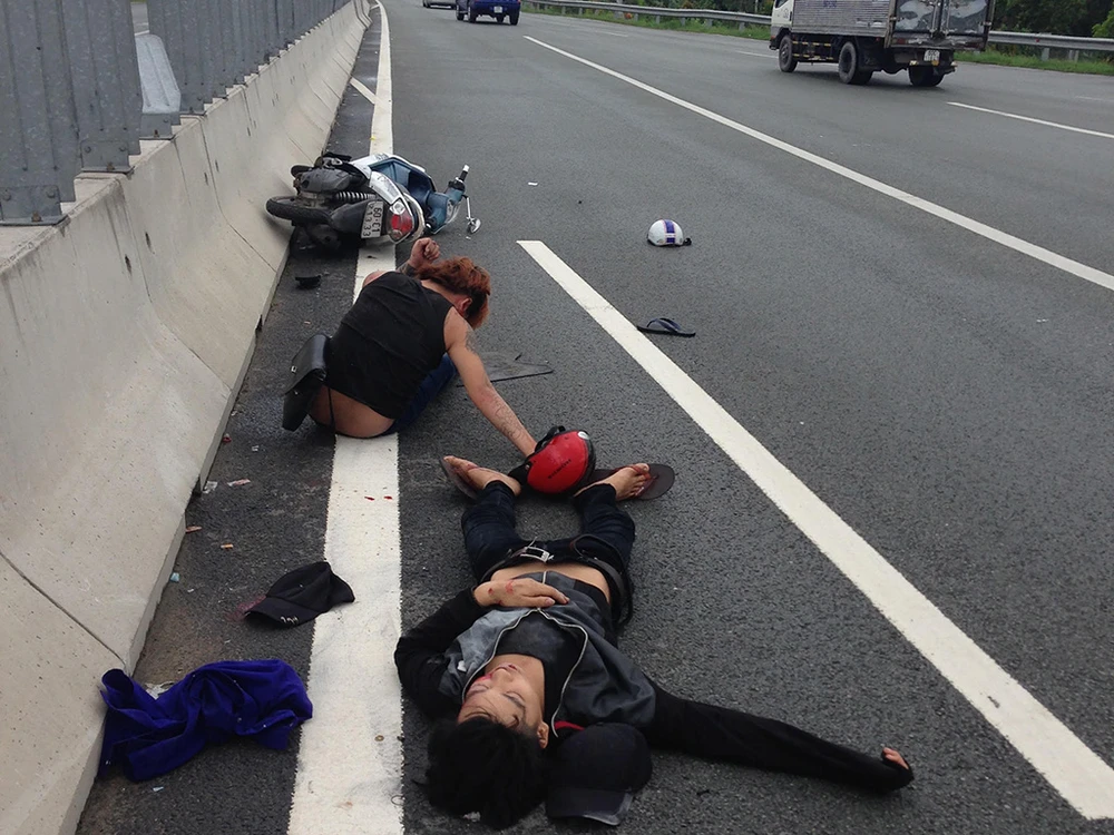 Cú va chạm mạnh khiến hai thanh niên ngã ra đường, Sang bị thương ở mặt, Khang bị xây xát và được đưa đi cấp cứu ở BV quận 2.