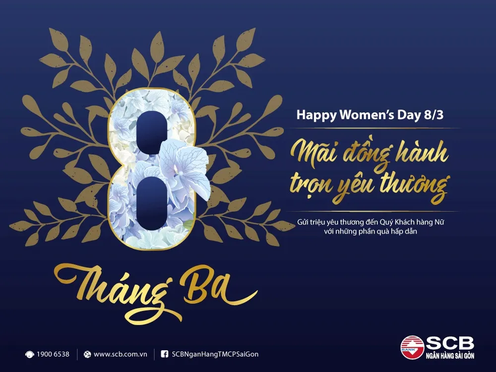 Chương trình như là lời tri ân và lời chúc tốt đẹp nhất dành cho phái đẹp. Cụ thể, trong ngày 8-3, tất cả khách hàng nữ khi đến giao dịch tại các đơn vị kinh doanh của SCB trên toàn hệ thống sẽ nhận được một phần quà là hoa sáp thơm. Ngoài ra, khách hàng nữ là hội viên SCB Premier thỏa điều kiện chương trình sẽ được tặng phần quà là thiệp chúc mừng và khăn lụa cao cấp.