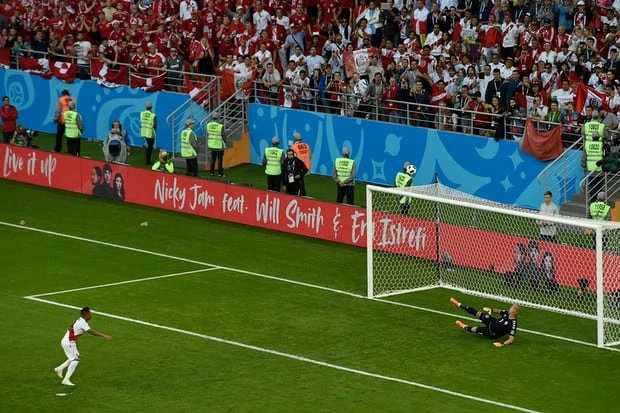 Trở lại sân chơi cấp thế giới sau 36 năm, đội tuyển Peru thi đấu như cháy hết mình với từng phút bóng lăn. Phút 12 tiền vệ công Andre Carrillo có pha dứt điểm, cũng may cho Đan Mạch nhờ sự cản phá xuất thần của Kasper Schmeichel mới giữ cho mành lưới của đại diện đến từ Bắc Âu không phải rung lên.
