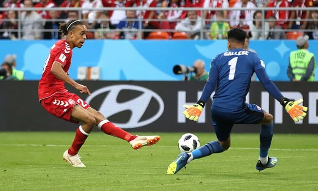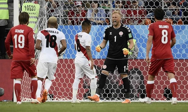 Chỉ ít phút sau đó Peru cũng có cơ hội san bằng cách biệt nhưng bóng không thể thoát khỏi tay của Kasper Schmeichel.