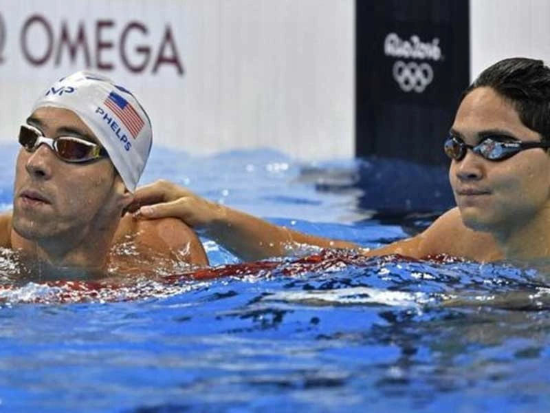Schooling (phải) vượt qua Michael Phelps (trái) lên ngôi vô địch Olympic Rio 2016 sẽ tham dự SEA Games 29. Ảnh: REUTERS