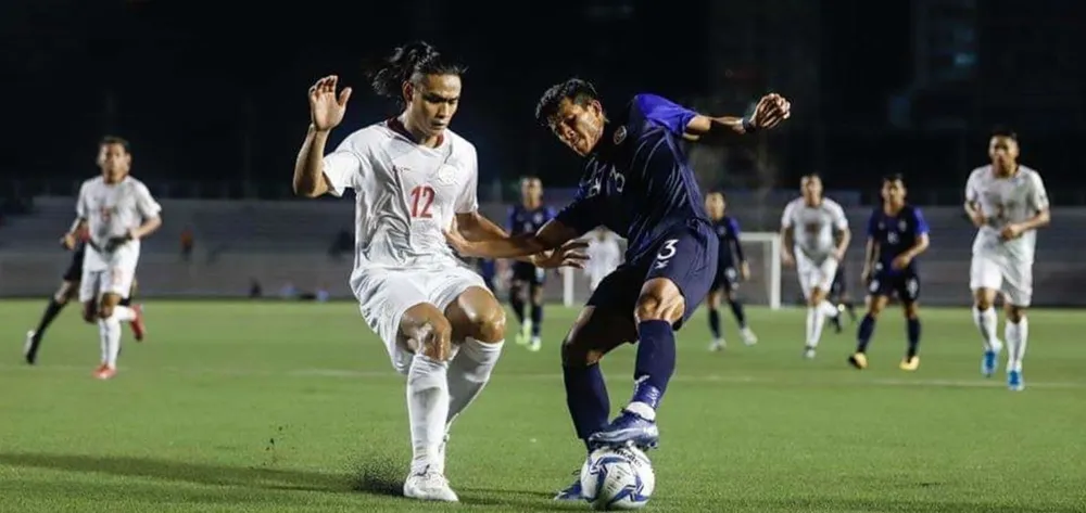 Philippines (trắng) trong trận hòa khó khăn với Campuchia.