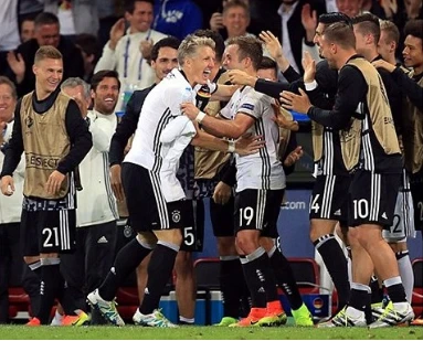 Schweinsteiger ăn mừng bàn thắng tặng hôn thê.