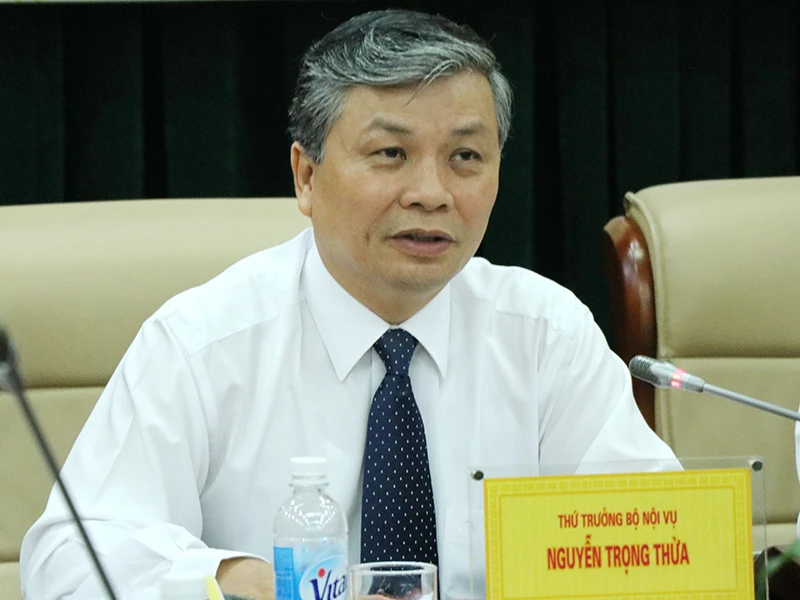 Thứ trưởng Bộ Nội vụ Nguyễn Trọng Thừa trao đổi với báo chí tại buổi họp báo. Ảnh: Đ.MINH