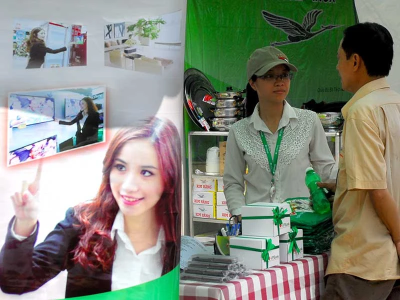 Người dân tìm thông tin vay tiêu dùng tại một quầy ngân hàng trong hội chợ ở TP.HCM. Ảnh: HTD