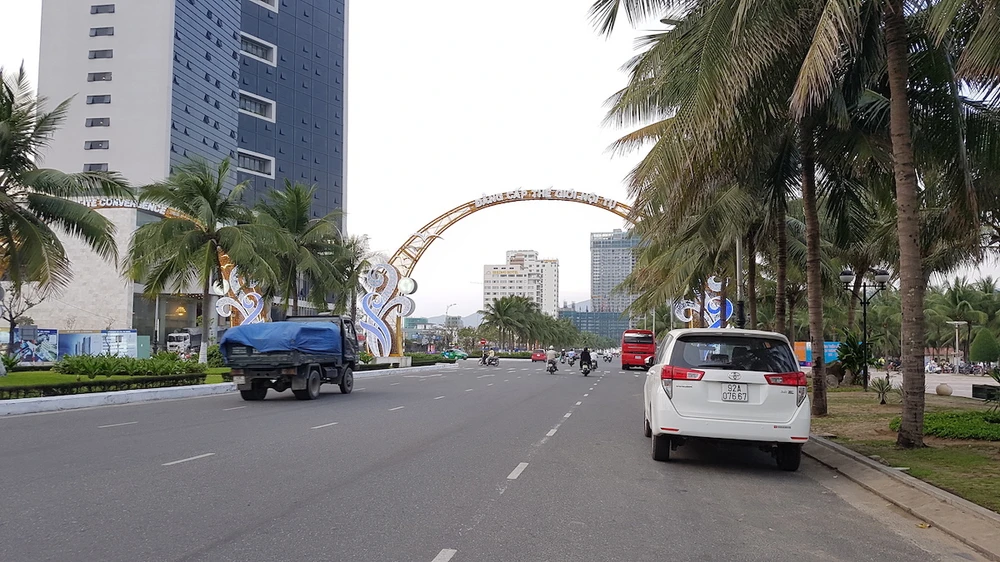 Đường Hoàng Sa cùng hơn 20 tuyến đường khác tại Đà Nẵng bị cấm đỗ xe dịp APEC. Ảnh: Tấn Việt