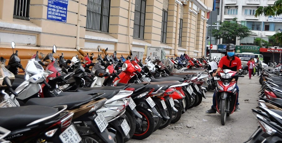 Nhu cầu gửi xe của người dân khi vào trung tâm TP.HCM là rất cao, nhất là khi các nơi đồng loạt ra quân "giải cứu" vỉa hè và xử phạt xe dừng, đậu sai quy định. Ảnh: MP