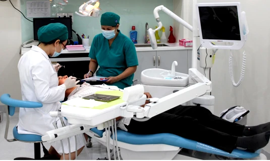 Bác sĩ phòng khám chuyên khoa Răng hàm mặt đang điều trị bệnh nhân. Ảnh: TRẦN NGỌC