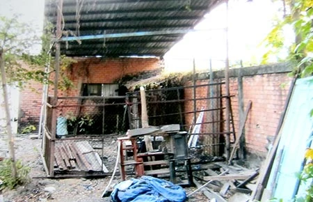 Tối 17-2, bà Em lại dựng khung nhà làm sẵn bằng sắt tại phần đất này (ảnh). Công ty báo cho chủ tịch phường và trưởng khu phố nhưng sau đó bà Em vẫn tiếp tục lợp mái nhà, làm rào chắn khuôn viên nhà.