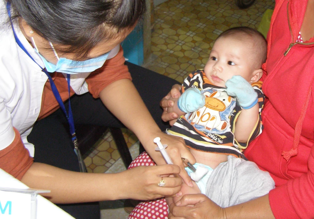 Một trẻ đang được tiêm chủng bắt buộc. Ảnh: TRẦN NGỌC