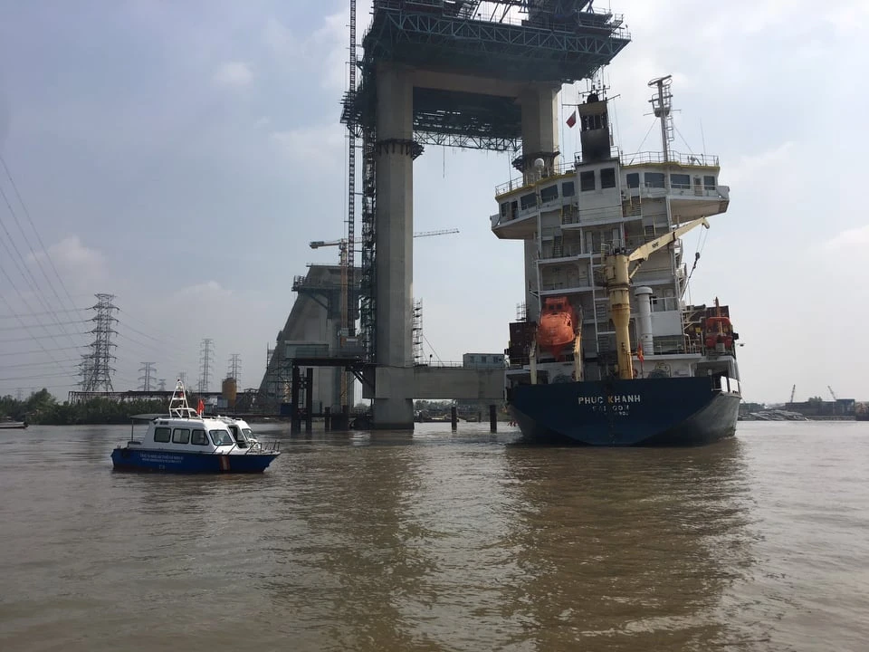 Tại hiện trường, luồng hàng hải đã được thông tuyến bình thường. Tại trụ P16 phía bờ Nhơn Trạch, một phần của cẩu tháp bị gãy đổ còn sót lại, một phần nhô lên mặt nước.
