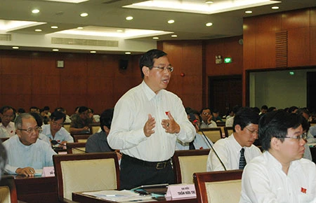 Các ĐB đang phát biểu và thảo luận tại kỳ họp. Ảnh: T.HƯƠNG
