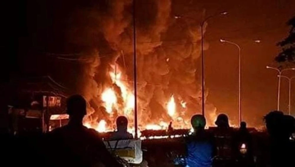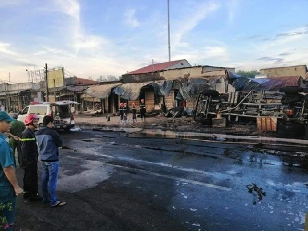 Va chạm khiến xe bồn mất lái lao qua dải phân cách đâm vào trụ điện rồi lật ngang. 14.000 lít xăng dầu trên xe bồn chảy tràn ra quốc lộ 13 gây hỏa hoạn kinh hoàng khiến 19 căn nhà bị cháy, sáu người chết tại chỗ.