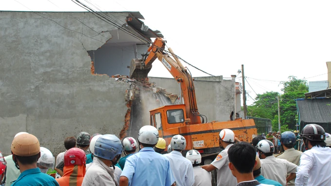 Cưỡng chế nhà xây không phép ở huyện Bình Chánh. Ảnh: Petrotimes