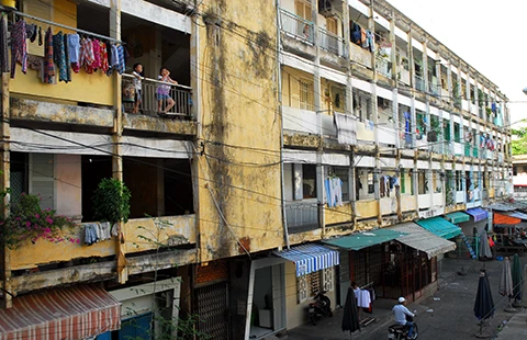 Chung cư Vĩnh Hội là một trong những chung cư cũ đã xuống cấp trên địa bàn quận 4, TP.HCM. Ảnh: HTD