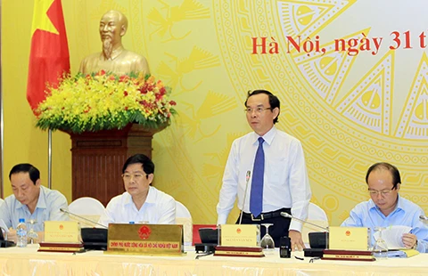 Chủ nhiệm, Bộ trưởng Văn phòng Chính phủ Nguyễn Văn Nên phát biểu tại buổi họp báo. Ảnh: TTXVN
