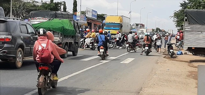 Giao lộ km30 và QL1 luôn dày đặc phương tiện giao thông, vô cùng bát nháo