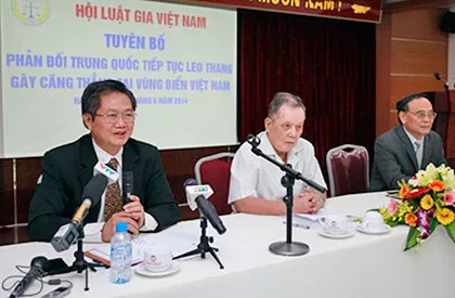 Hội Luật gia Việt Nam họp báo ra tuyên bố phản đối Trung Quốc tiếp tục leo thang gây căng thẳng tại vùng biển Việt Nam. Ảnh: CTV