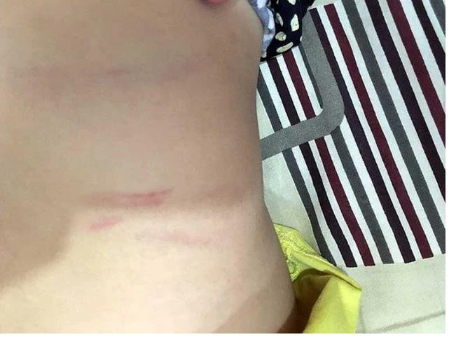 Vết bầm xước trên người cháu P. được xác định do cô giáo đánh. (Ảnh: Gia đình cung cấp)