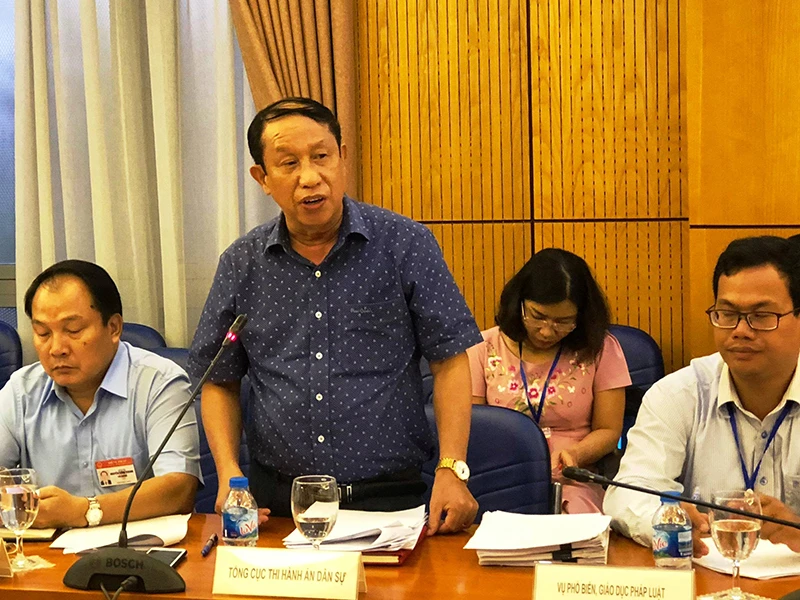 Ông Nguyễn Thanh Thủy, Phó Tổng Cục trưởng Tổng Cục Thi hành án dân sự, phát biểu. Ảnh: TRỌNG PHÚ