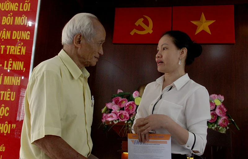 Cử tri Lê Kim Du (phường Bình Trị Đông B) chia sẻ ý kiến với ĐBQH Phan Thị Bình Thuận. Ảnh: THANH TÚ
