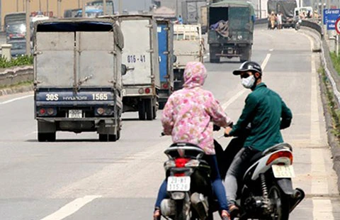 Nhiều xe máy ngang nhiên đi vào đường cao tốc vành đai 3 - Hà Nội. Ảnh: BÁ ĐÔ