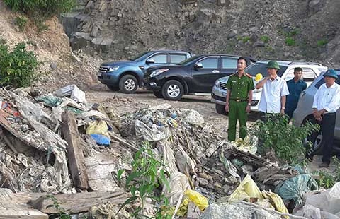 Ngày 4-8, lực lượng chức năng ở Hà Tĩnh đã phát hiện gần 100 m3 rác phế thải xây dựng từ dự án Formosa Hà Tĩnh đổ trái phép tại phường Kỳ Phương (thị xã Kỳ Anh, Hà Tĩnh). Ảnh: ĐL