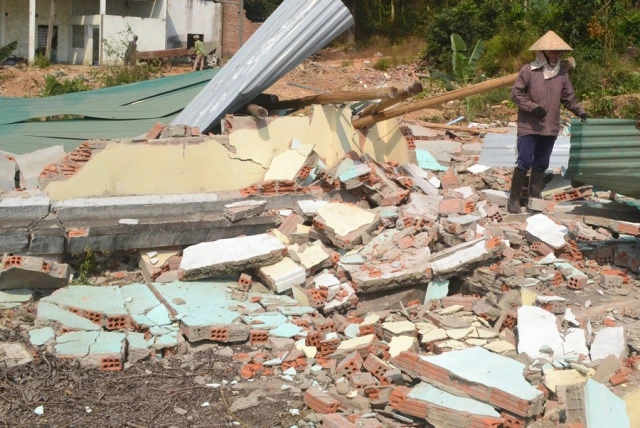 Ngôi nhà bị tháo dỡ trên là của gia đình ông Đoàn Duy Muời (thôn Long Xuân, xã Bình Long, huyện Bình Sơn). Ông Mười đã nhận tiền bồi thường nhưng cho rằng mức bồi thường quá thấp nên gửi đơn khiếu nại lên chính quyền huyện Bình Sơn. Vụ việc đang trong quá trình giải quyết thì nhà ông Mười bị phá.