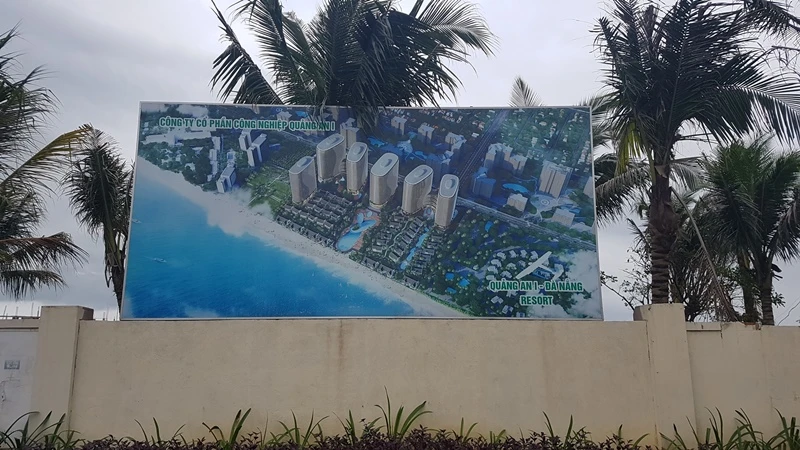 Ngoài ra, một bảng quảng cáo được dựng bên ngoài với hình ảnh dự án kèm thông tin “Công ty CP Công nghiệp Quảng An 1. Quảng An 1 - Đà Nẵng resort” mà không hề có tên chủ đầu tư được công bố là Công ty CP Phát triển đô thị du lịch Sóng Việt. Quảng An 1 chính là nhà đầu tư hệ thống buýt trợ giá tại Đà Nẵng và sở hữu hàng trăm xe buýt, xe khách hoạt động tại đây.