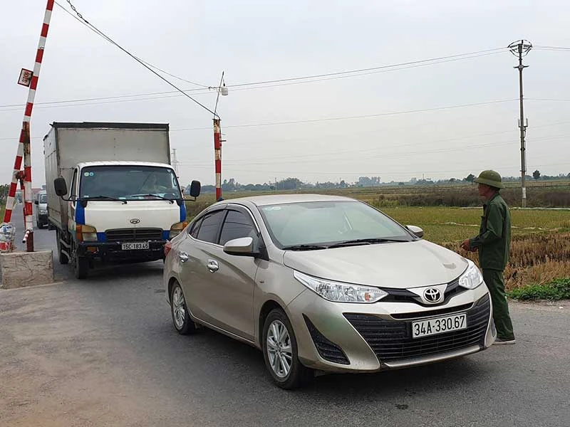 Theo quan sát của PV, hiện chốt thu phí ô tô chạy qua đường làng nối từ quốc lộ 5 qua xã Lê Thiện (huyện An Dương, Hải Phòng) khá nhộn nhịp. Chốt nằm ở cuối thôn Phí Xá, ngay khu vực có hai trụ bê tông và thanh barie chắn đường. Thanh barie này thường xuyên được kéo lên cao, kế đó là hai người đàn ông chừng ngoài 60 tuổi túc trực thu phí các ô tô qua lại.