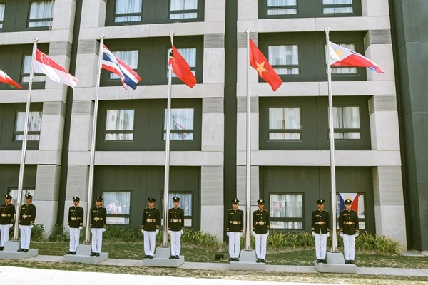Thượng cờ các đoàn thể thao trong Làng vận động viên SEA Games.