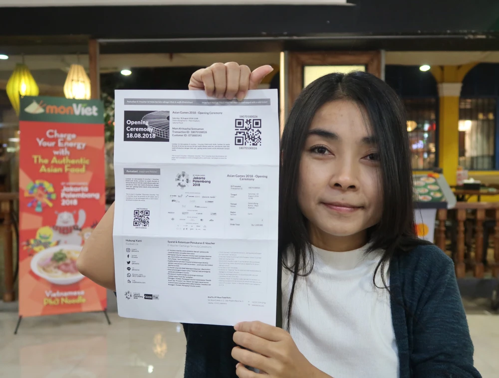 Một CĐV chủ nhà khoe vé dự khán lễ khai mạc.